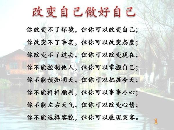 感恩伤害你的人,因为他磨炼了你的心态; 感恩欺骗你的人,因为他增进了你的智慧; 感恩中伤你的人,因为他历练了你的人格; 感恩鞭打你的人,因为他激发了你的斗志; 感恩遗弃你的人,因为他教导了你的独力; 感恩绊倒你的人,因为他强化了你的能力; 感恩斥责你的人,因为他提醒了你的缺点; 感恩所有人。